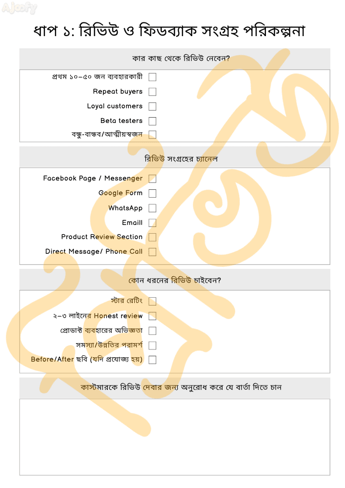 🔹 ধাপ ১: রিভিউ সংগ্রহের পরিকল্পনা