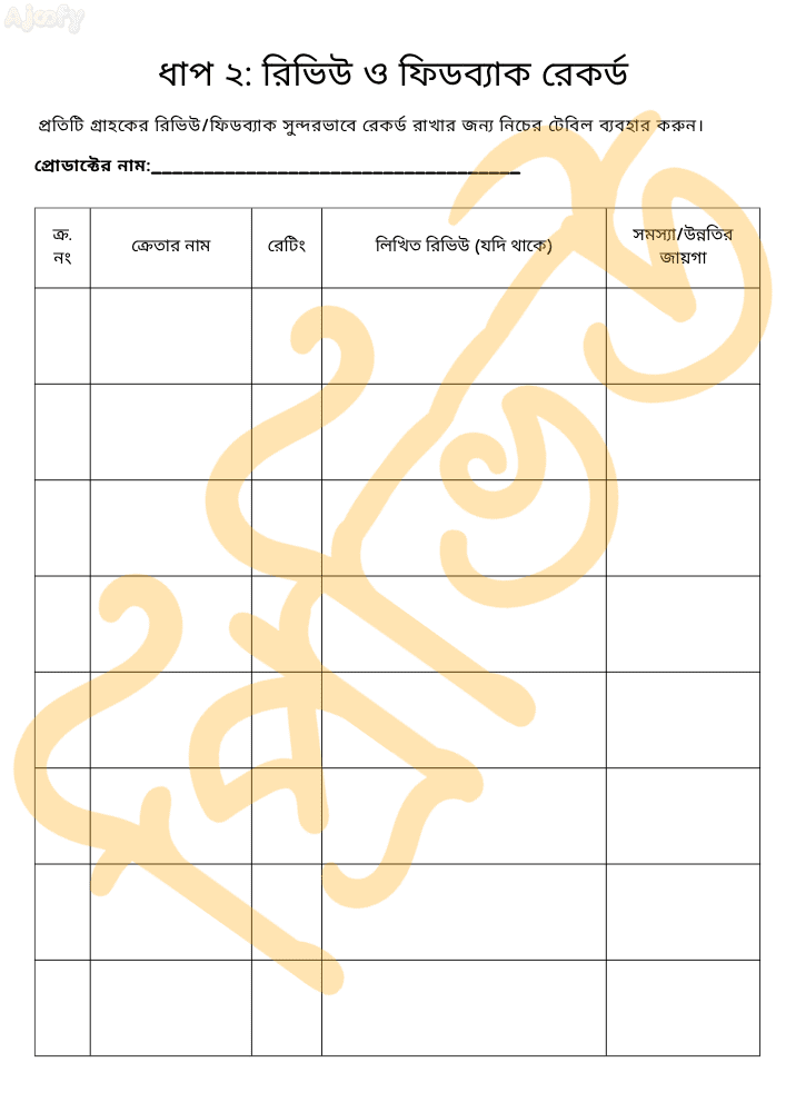 🔹 ধাপ ২: রিভিউ ও ফিডব্যাক রেকর্ড রাখা