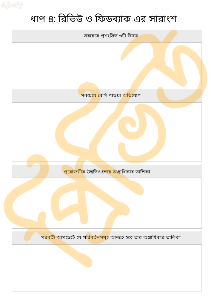 🔹 ধাপ ৪: রিভিউ ও ফিডব্যাক এর সারাংশ রেকর্ড করে রাখা