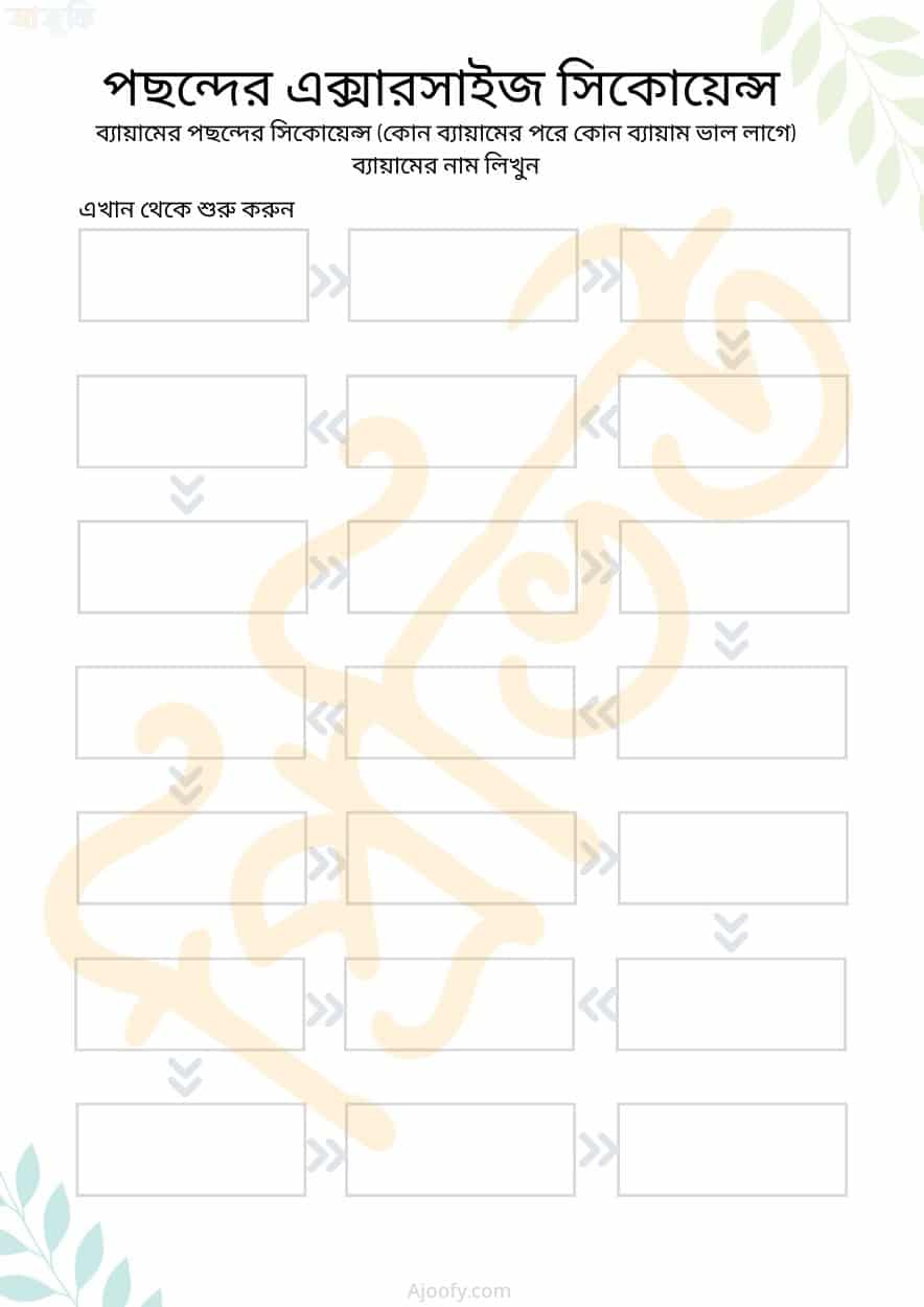 আজুফির এই ডাউনলোডেবল Exercise Journal একজন ব্যায়ামকারীর জন্য শুধুমাত্র একটি জার্নাল নয়, বরং তার ব্যায়াম করার কাজটি সফলতার সাথে করার জন্য এক অনন্য সহযোগী।