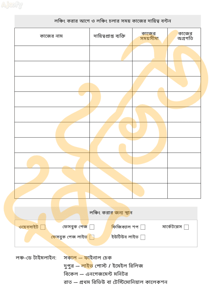✅ লঞ্চের আগে, চলাকালীন ও পরে করণীয় কাজগুলো এক জায়গায় সংগঠিত করতে