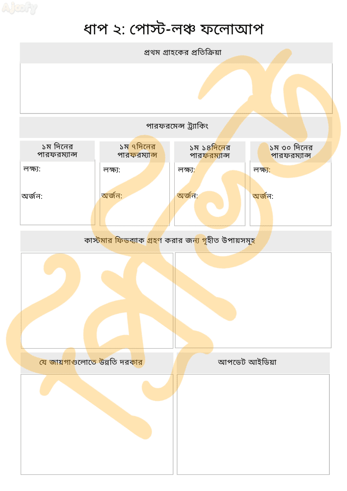 ✅ প্রথম ১/৭/১৪/৩০ দিনের পারফরম্যান্স ও গ্রাহক প্রতিক্রিয়া ট্র্যাক করতে এবং